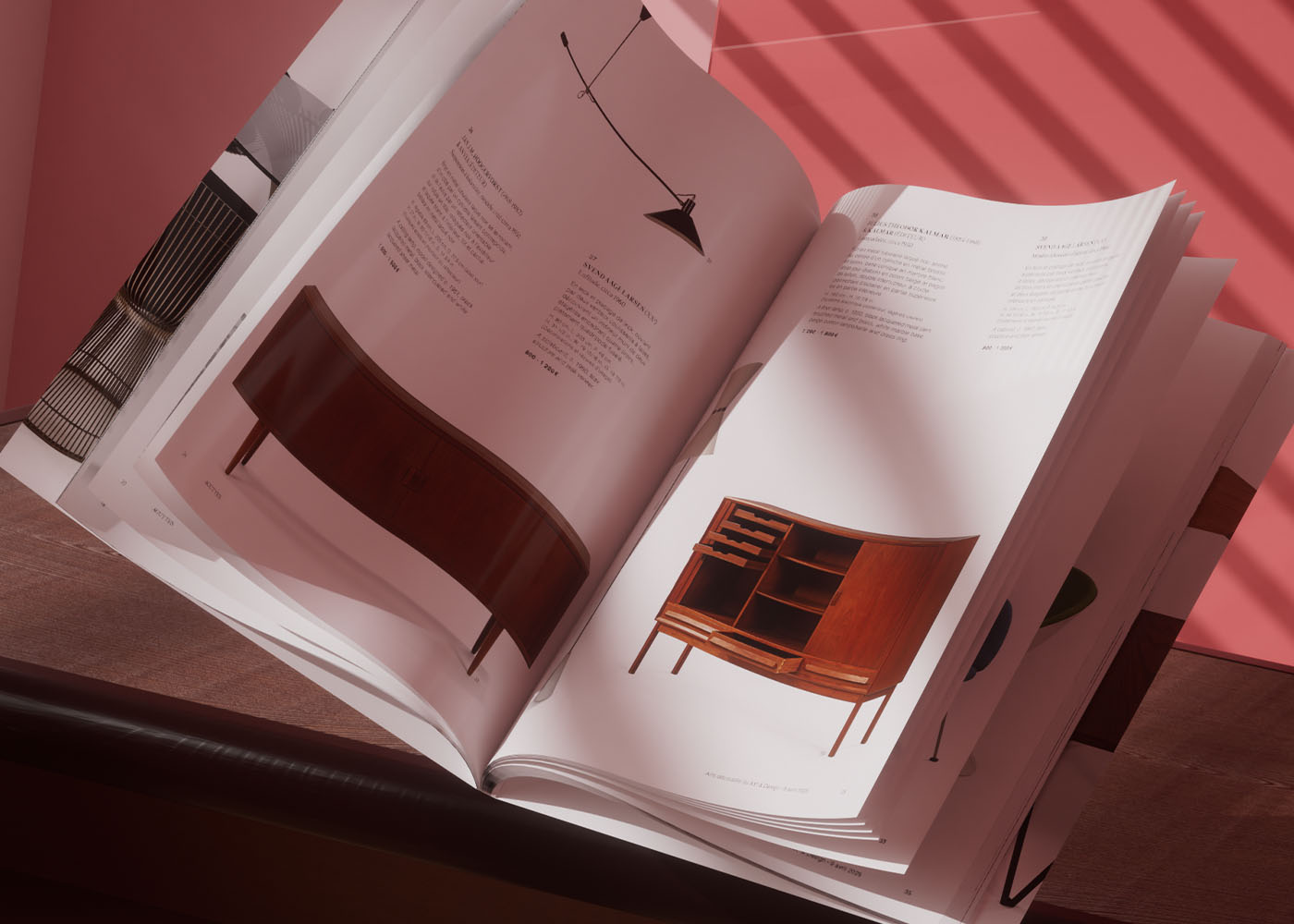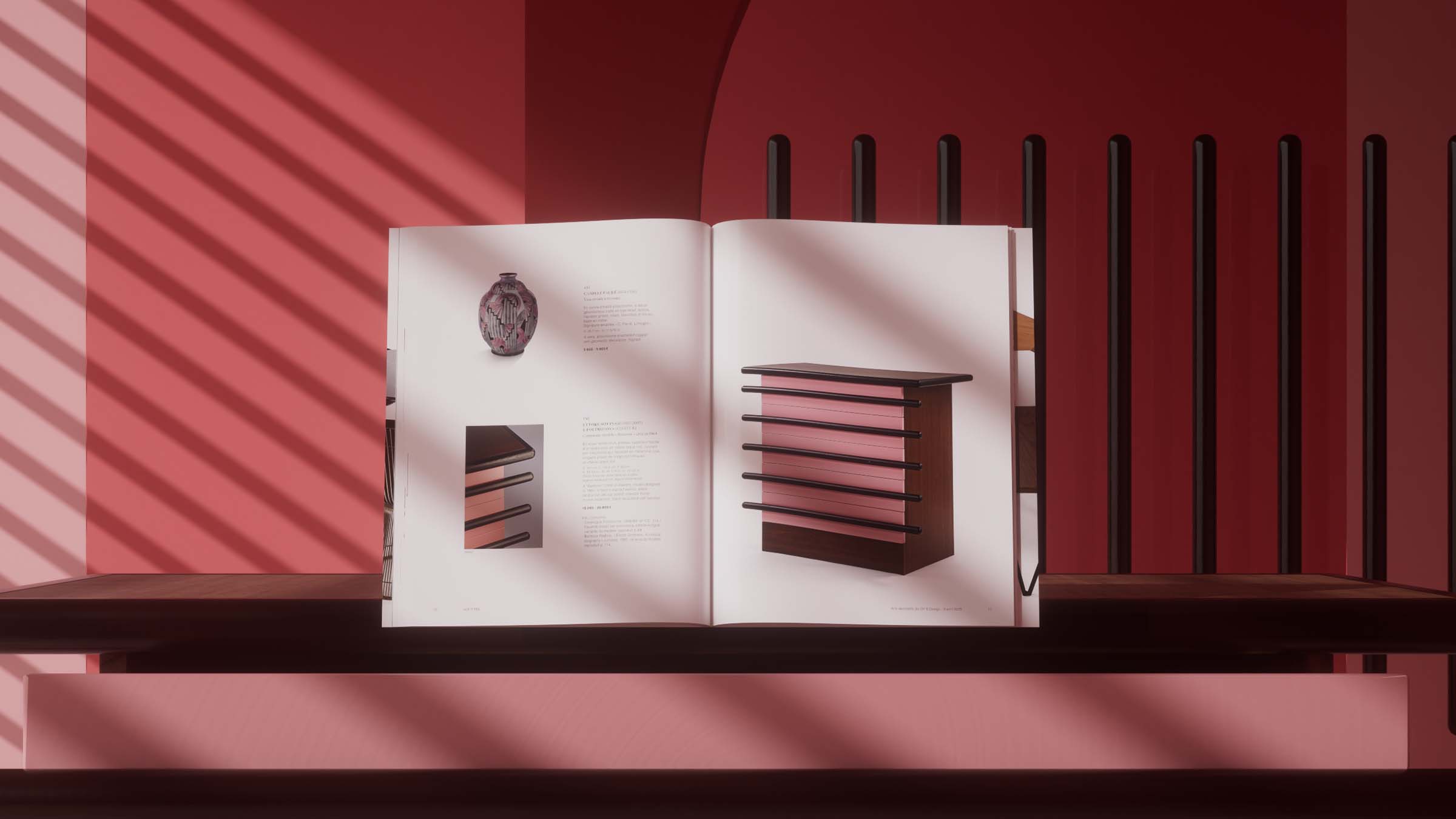 Création de la maquette du catalogue de 104 pages pour la vente aux enchères de mobilier design, d'après la charte graphique existante. Au programme : Ettore Sottsass, Charlotte Perriand, Gio Ponti, Claude Lalanne... Au total, la vente comprend 159 lots.
